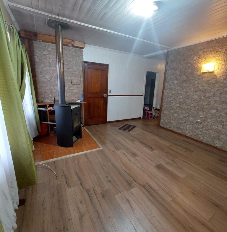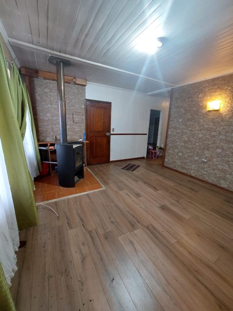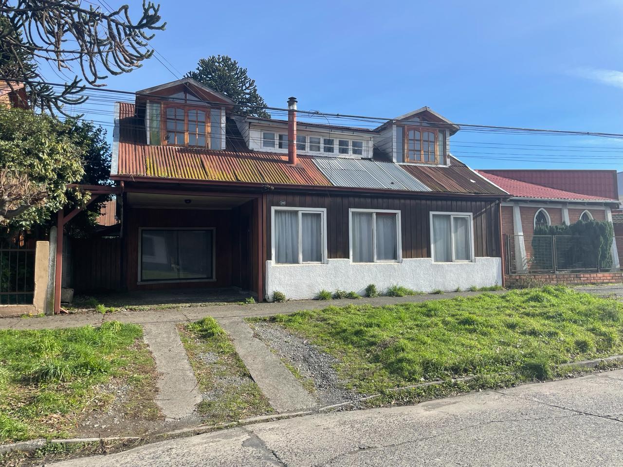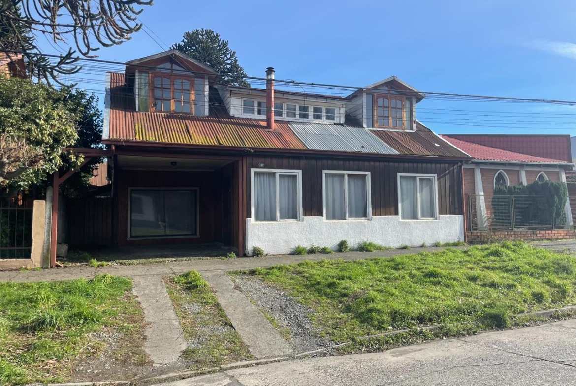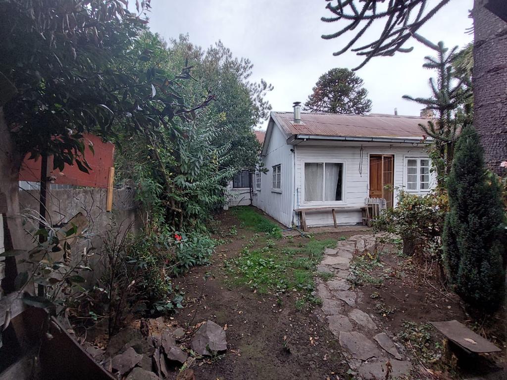 Terreno de 312,50 m2 área construida 156 m2 aprox . En madera nativa , a pasos liceo las araucarias básica , media , liceo industrial , Notaria , supermercado , banco .