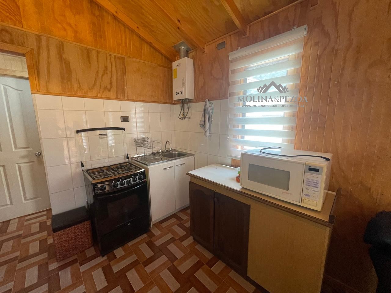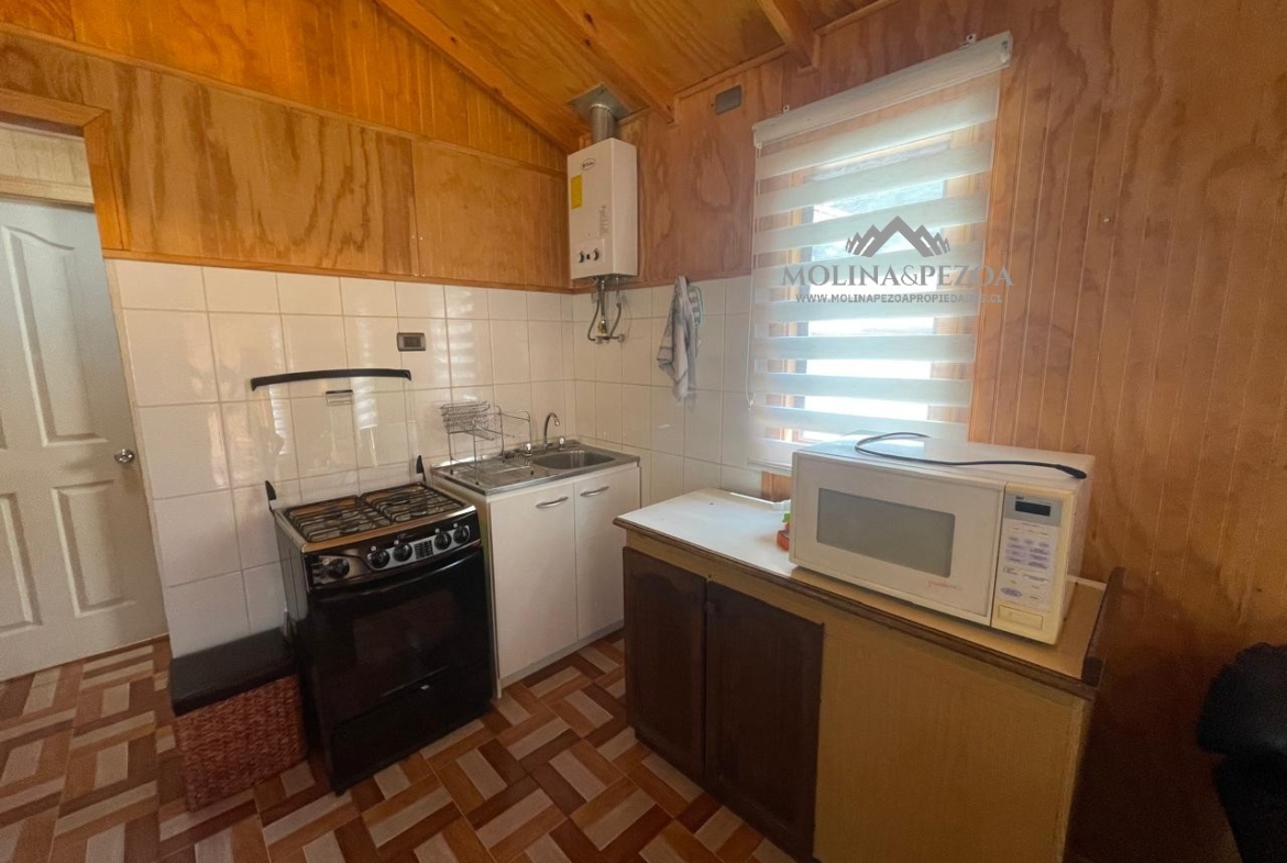 ▪️ Cocina equipada con lavaplatos, calefont, muebles, refrigerador, sillón de 3 cuerpos, cocina a gas de 4 platos, estufa catalítica a gas y microondas