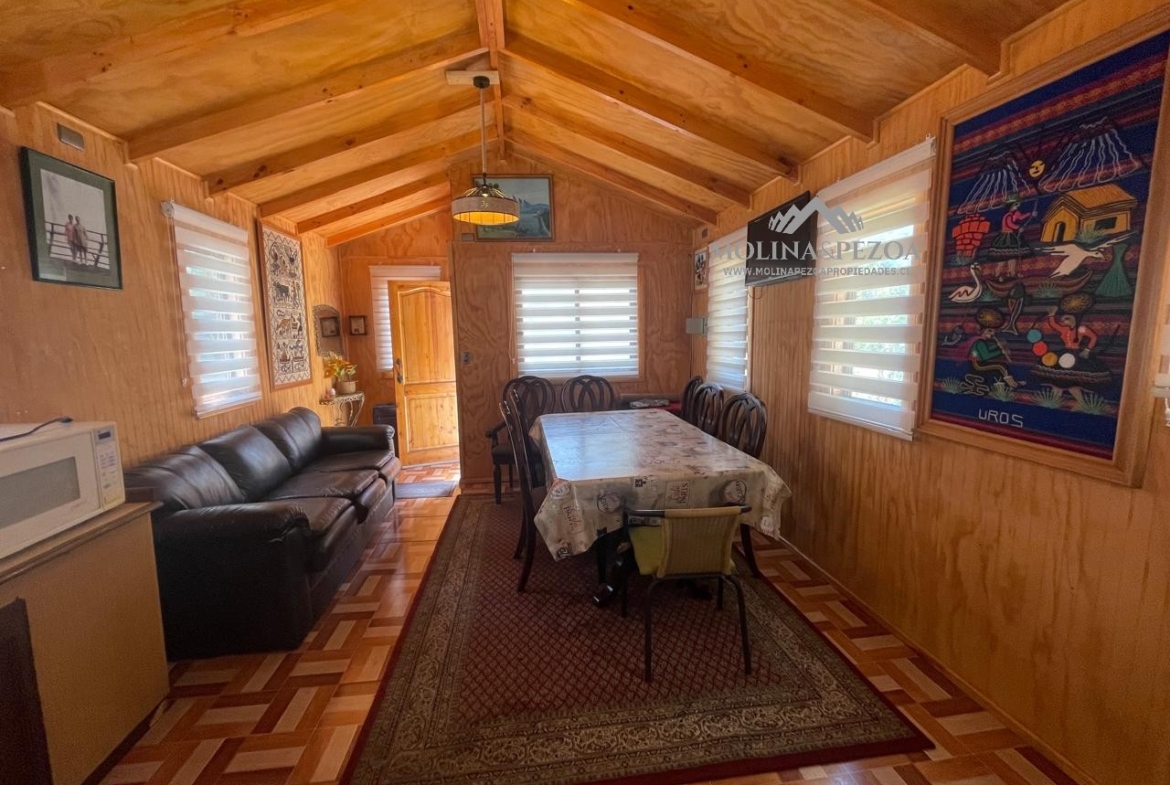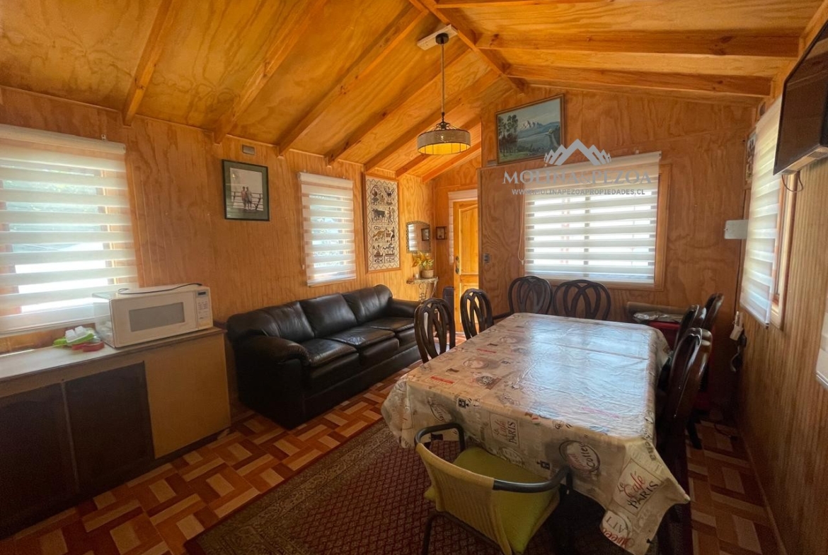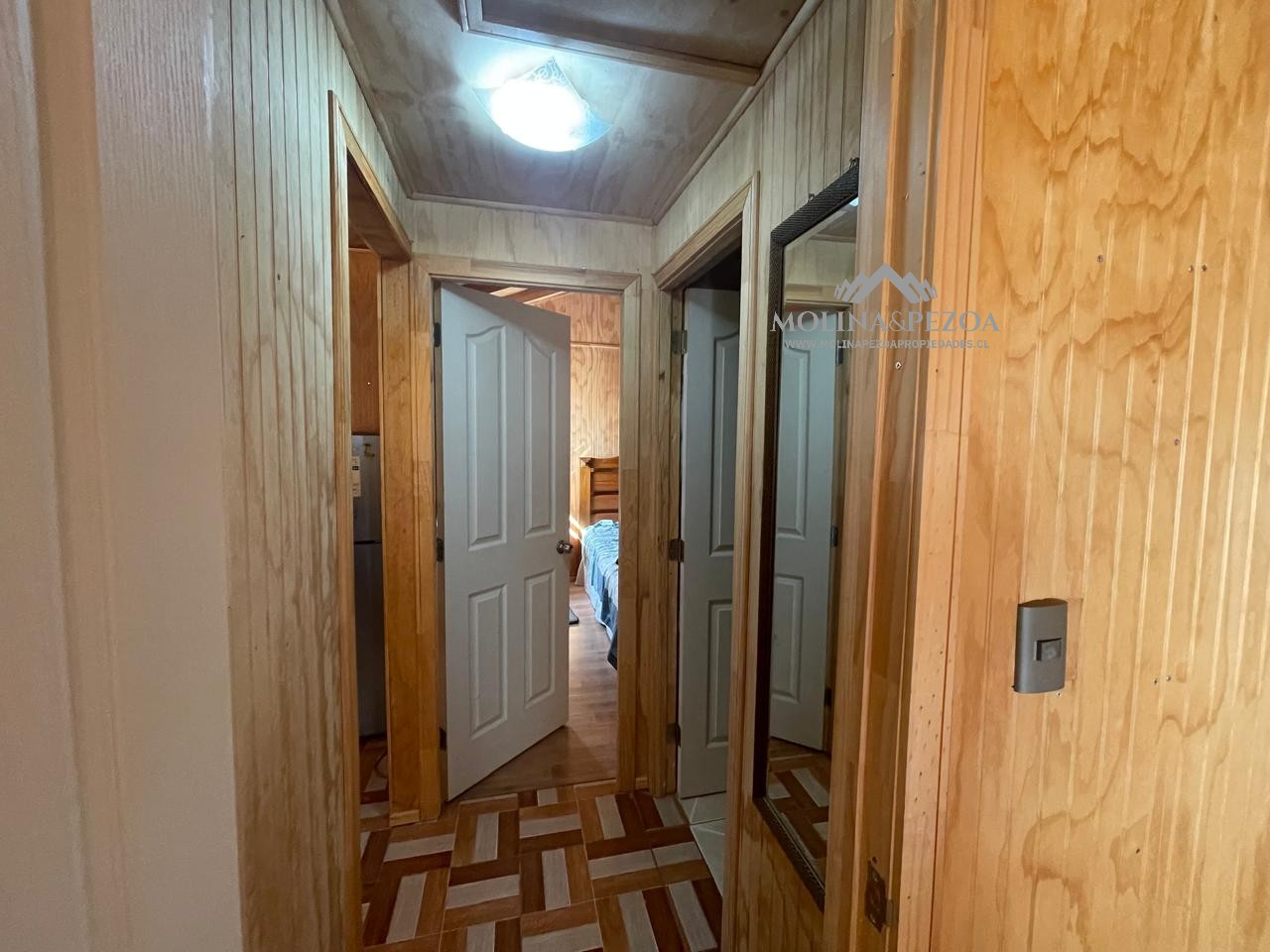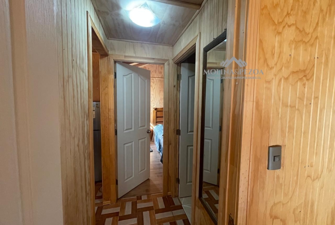 Cuenta con una superficie de terreno de 185 m² (18,50 metros de frente por 10 metros de fondo) y una casa de 58 m², de edificación acogedora y con poco uso. Construcción en madera nativa, con radier y sobre radier armado, pisos cerámicos y piso flotante en dormitorios, ventanas termopanel, aislación de lana mineral en muros, cielo y techo, revestimiento interior en terciado ranurado y exterior en siding.