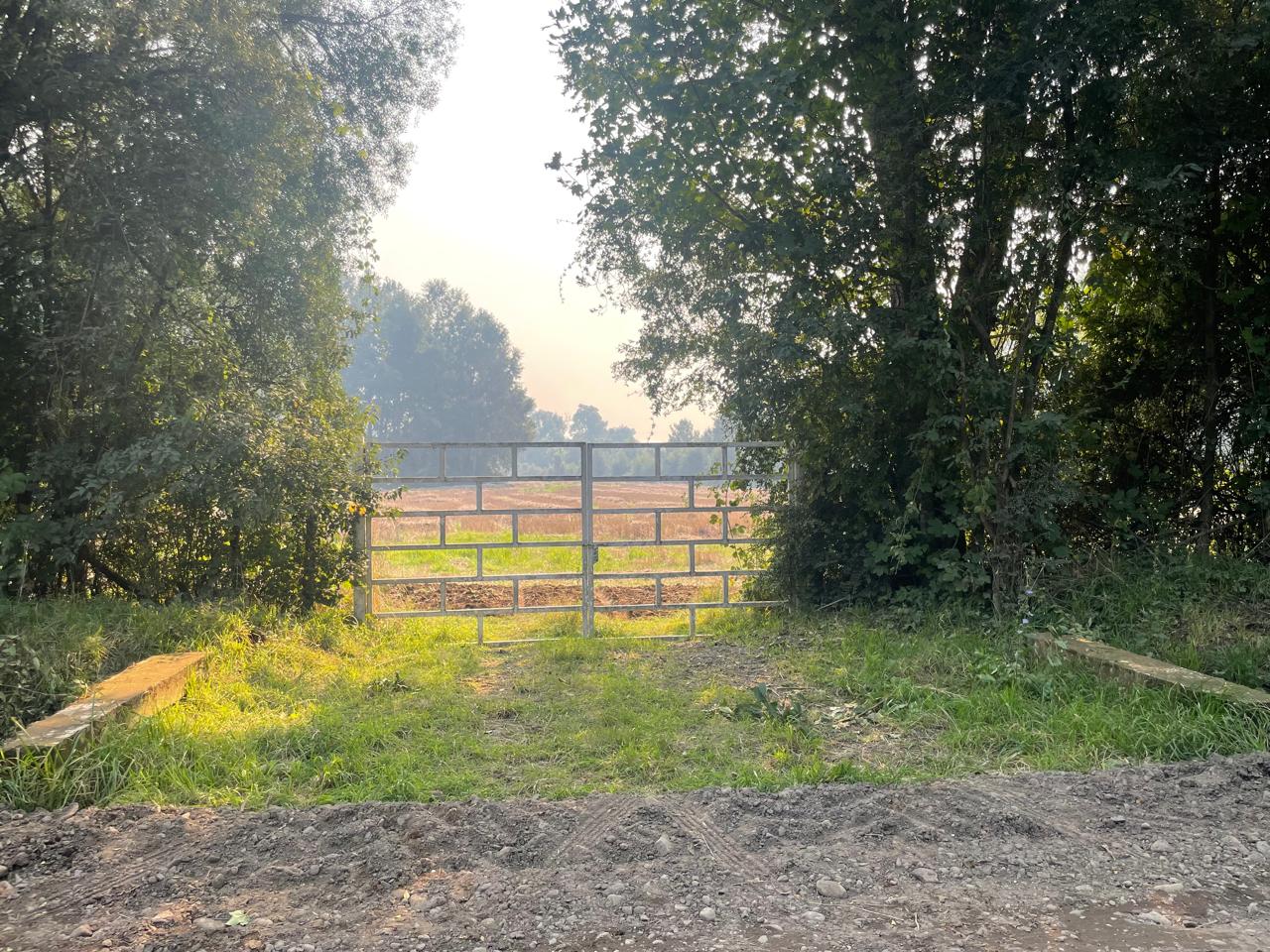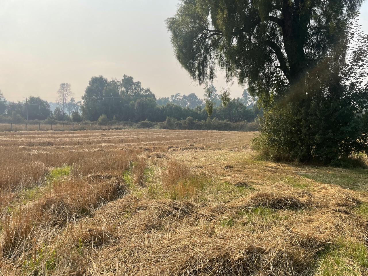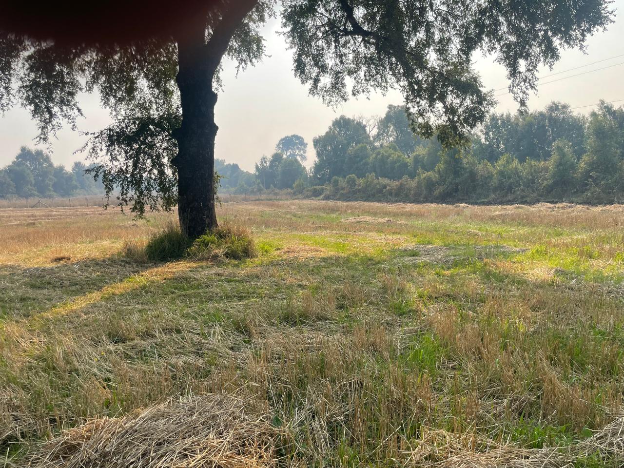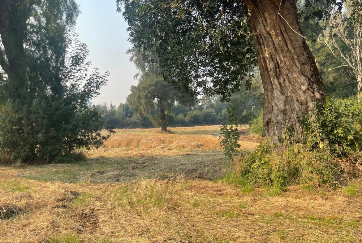 Terreno completamente plano, apto para el cultivo de cereales, con presencia de bosque de árboles nativos.